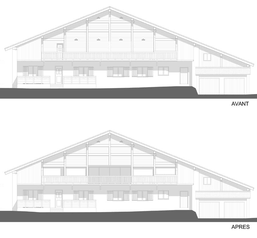 Notre étude s’est portée sur toute la batisse ; aussi bien les façades que l’intérieur. Toutes les menuiseries existantes sont remplacées par des menuiseries en aluminium foncé. La forme est le design sont conservés pour toutes les menuiseries hormis quelques unes transformées ou agrandies.